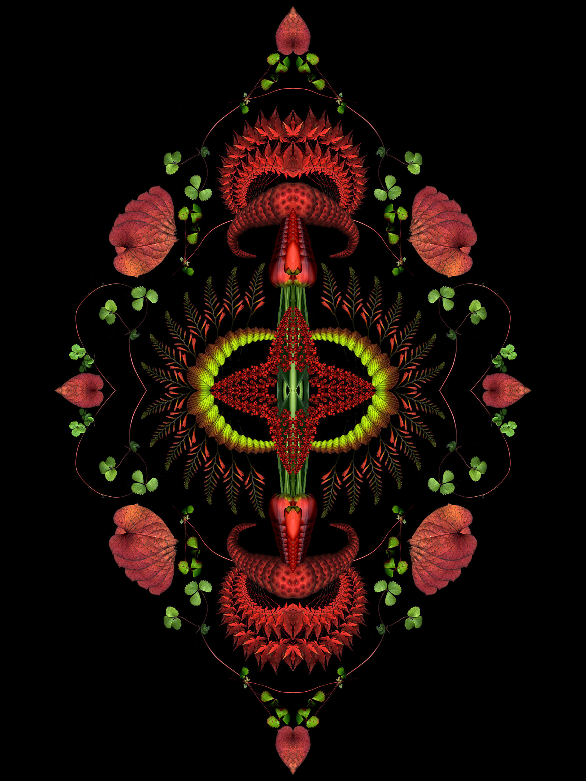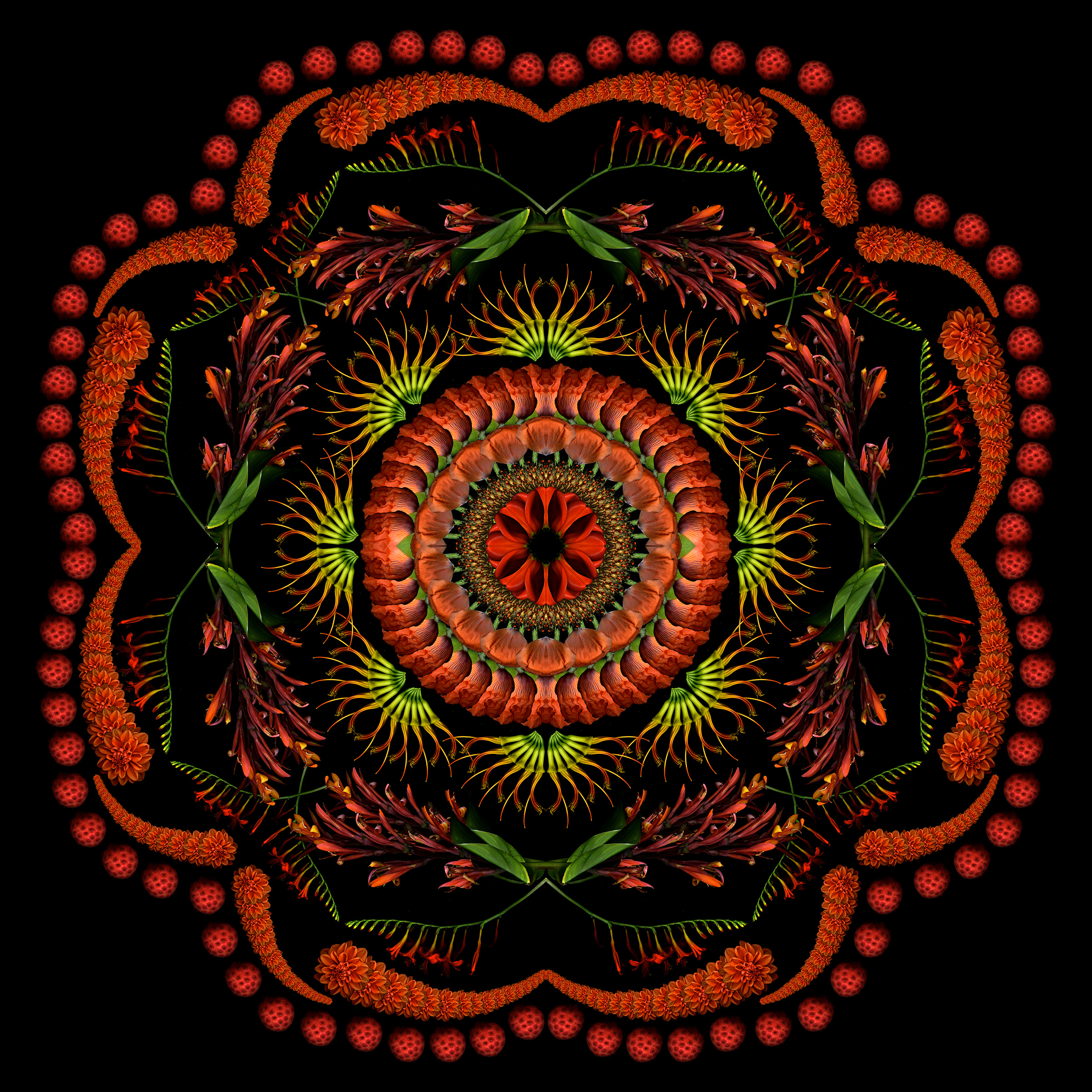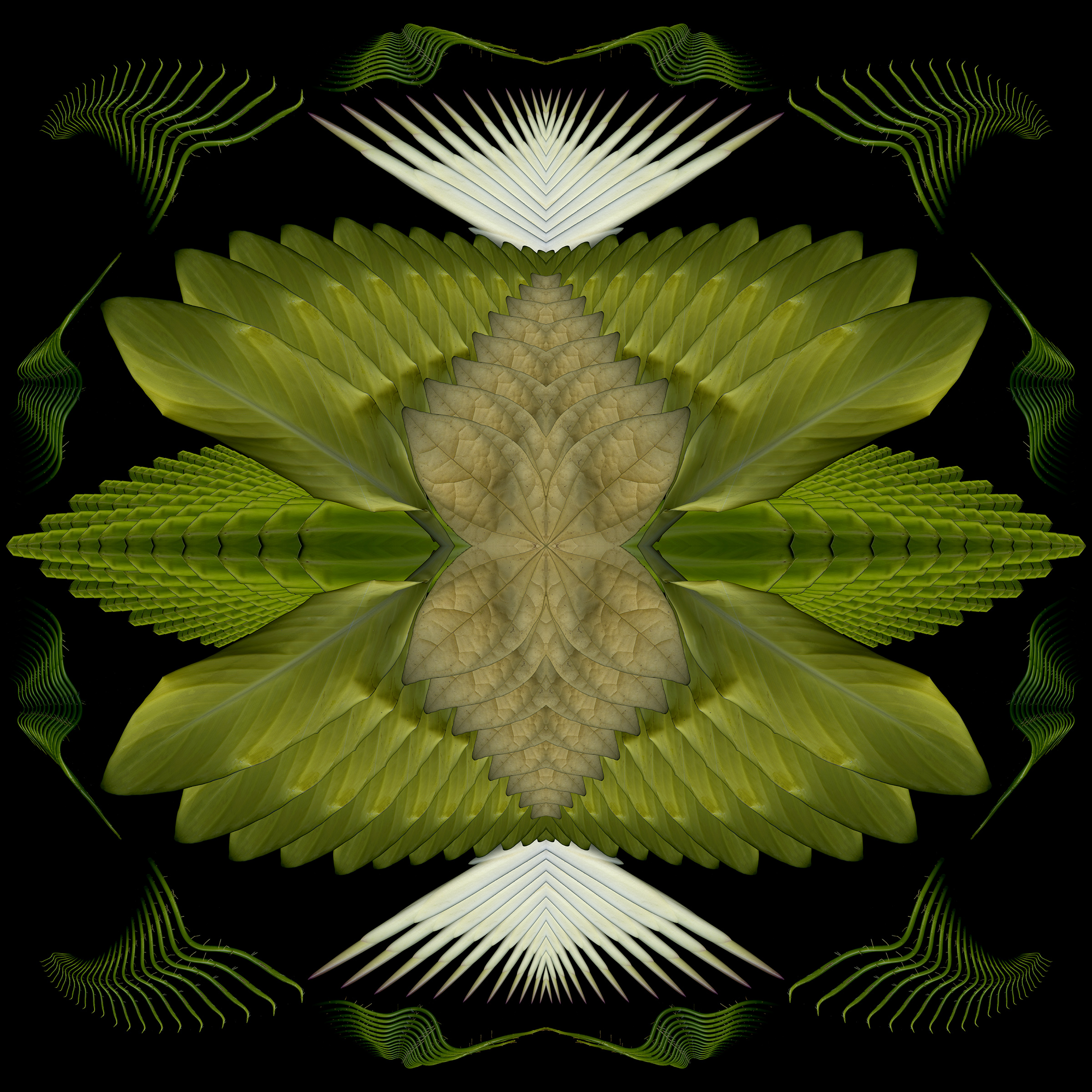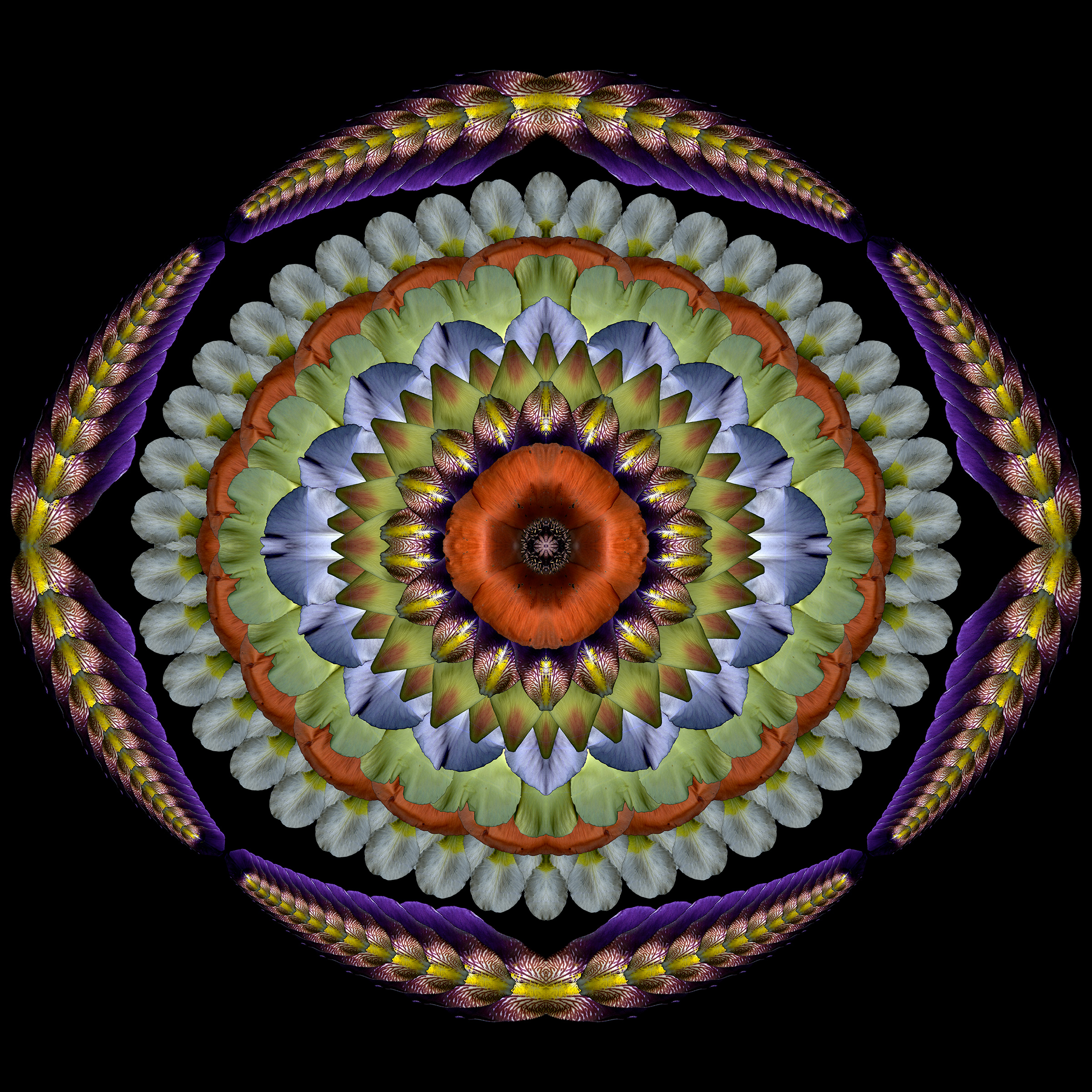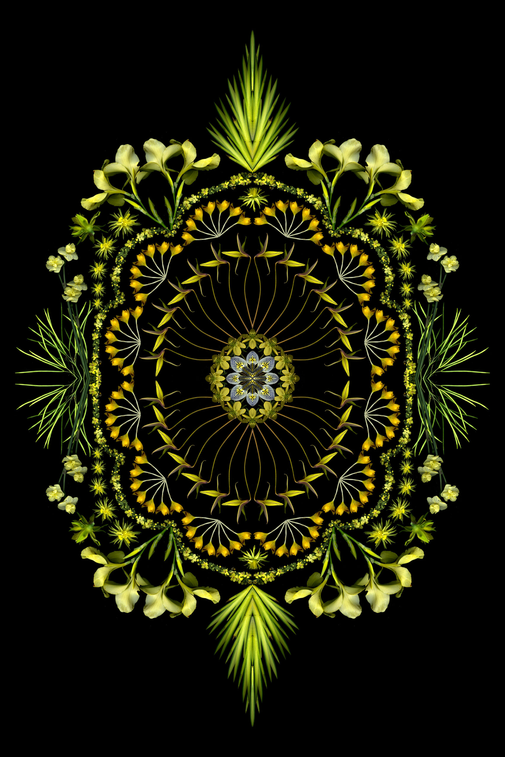 Still too cold to do fresh scans, though ephemerals are blooming early outside. So I used last year’s scans to create this 4-square that started as a bouquet and morphed into a mandala.