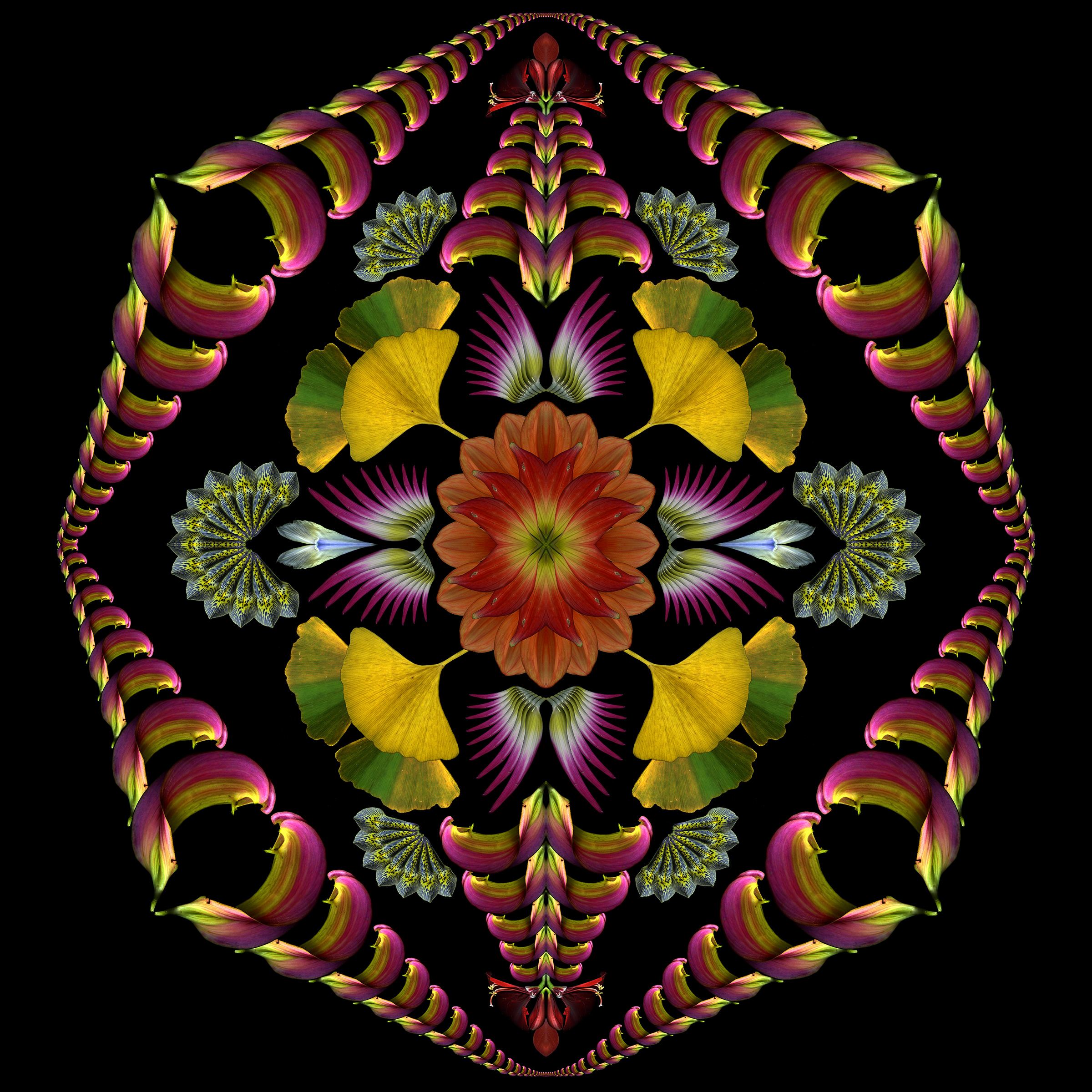 Dahlia, amaryllis and iris petals.  Gingko leaves.